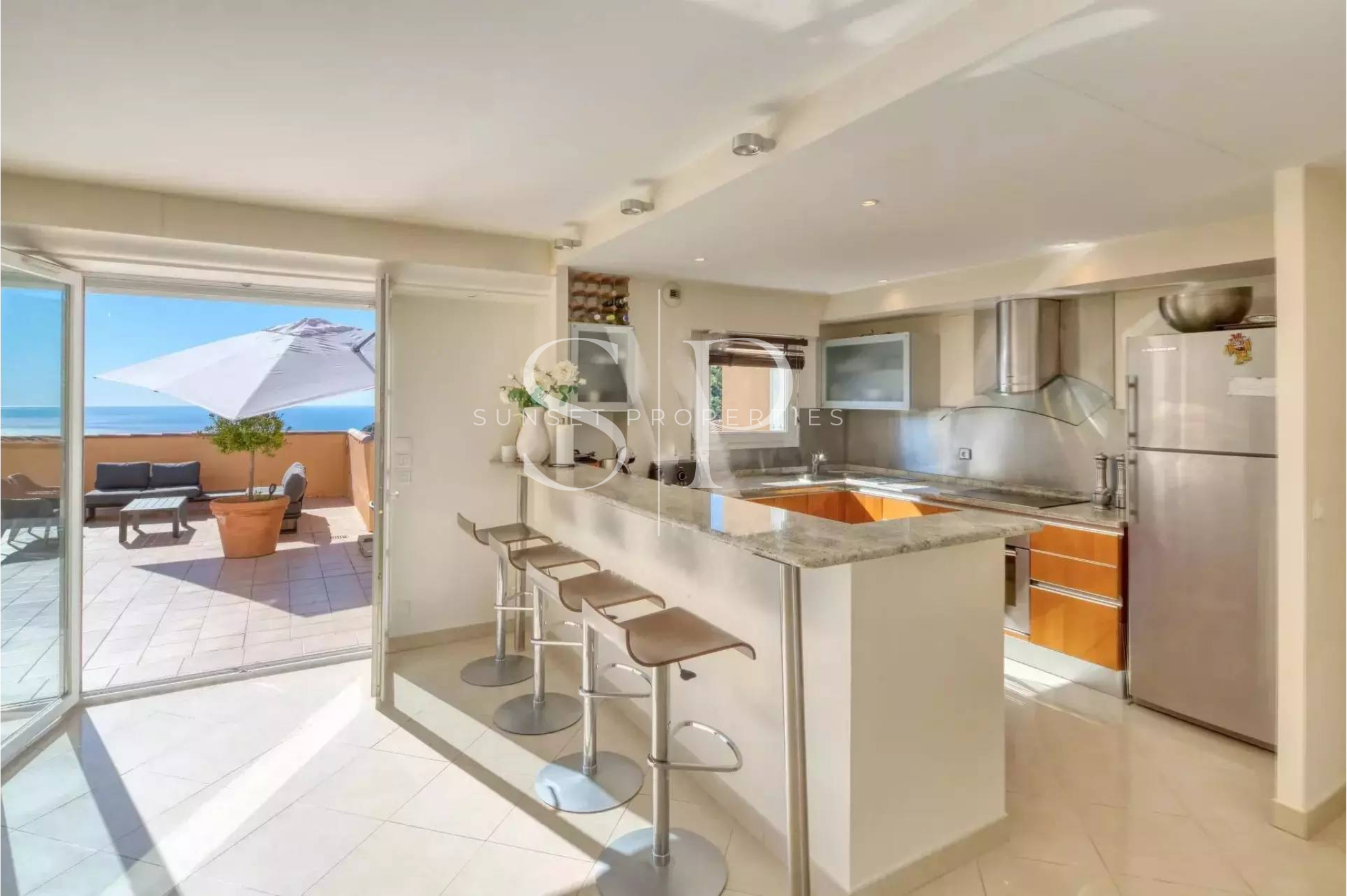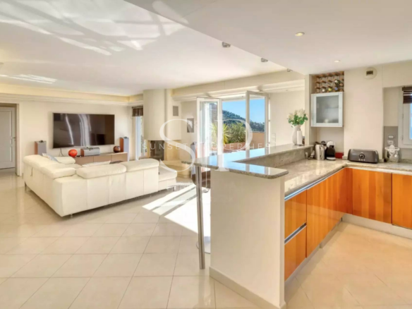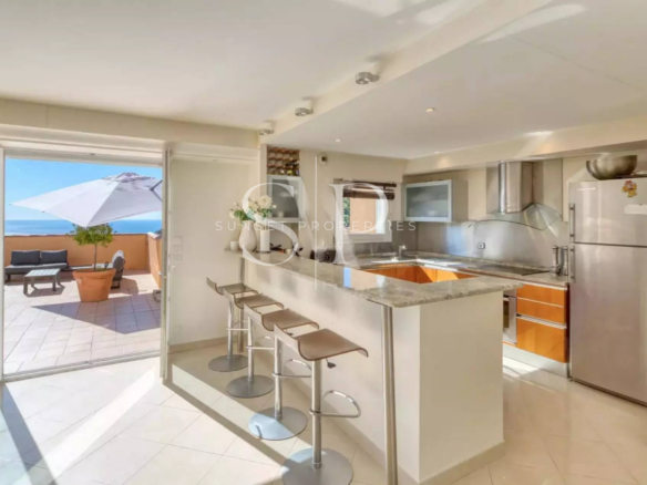 Avec une vue spectaculaire à 180° sur la mer et le château médiéval, ce duplex offre une tranquillité de vie tout en profitant de la proximité des commerces.