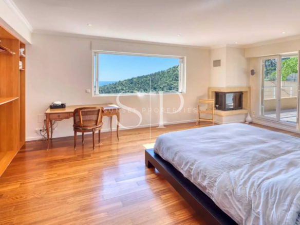 A l’étage se trouve la suite parentale avec cheminé disposant d’une salle de bain avec hammam, un large dressing, l’accès à une terrasse de 40 m2 et un agréable jardin privatif de 495 m² avec une magnifique vue panoramique.